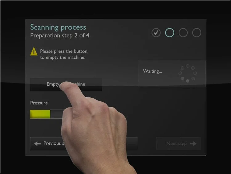 Completing scan preparations (Adobe Flash® prototype screenshot)