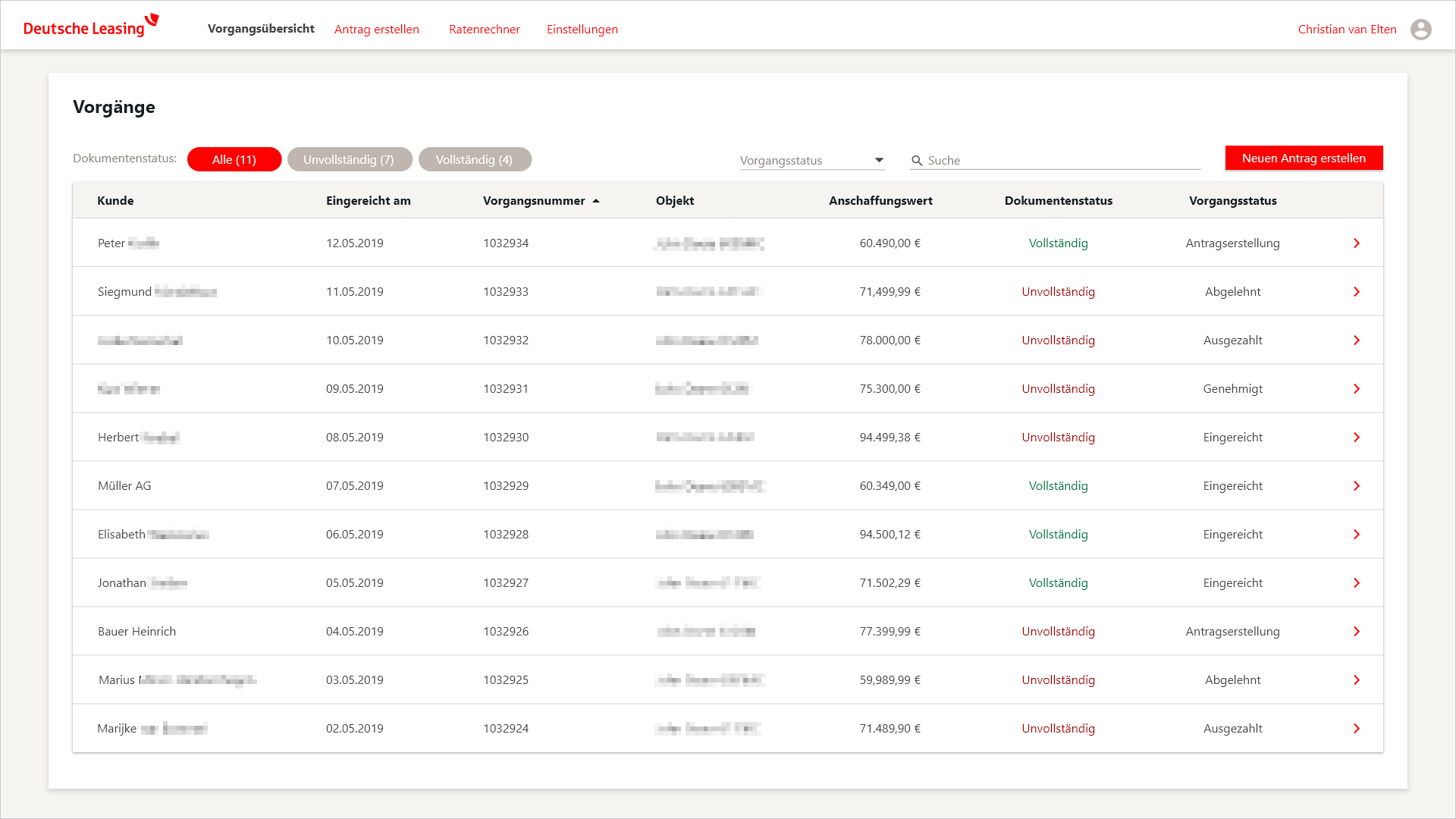 Deutsche Leasing aims to provide clerks with a fast and user-friendly process for concluding leasing contracts with their customers. The system will be designed to streamline and simplify the contract creation and approval process, allowing clerks to quickly generate leasing contracts based on customer requirements. The system will offer intuitive interfaces, pre-filled templates, and automated calculations to expedite the contract completion process, ensuring a seamless and efficient experience for both clerks and customers.
