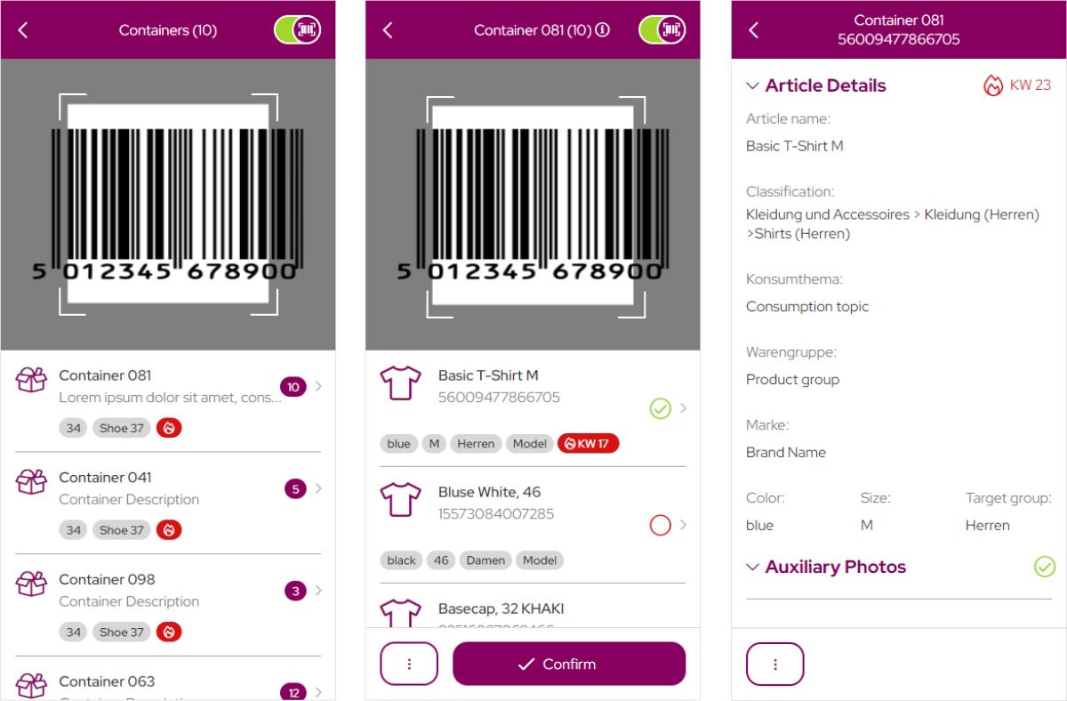 By utilizing an new iOS app, the items are scanned during goods receipt, allowing for immediate display of all item details.