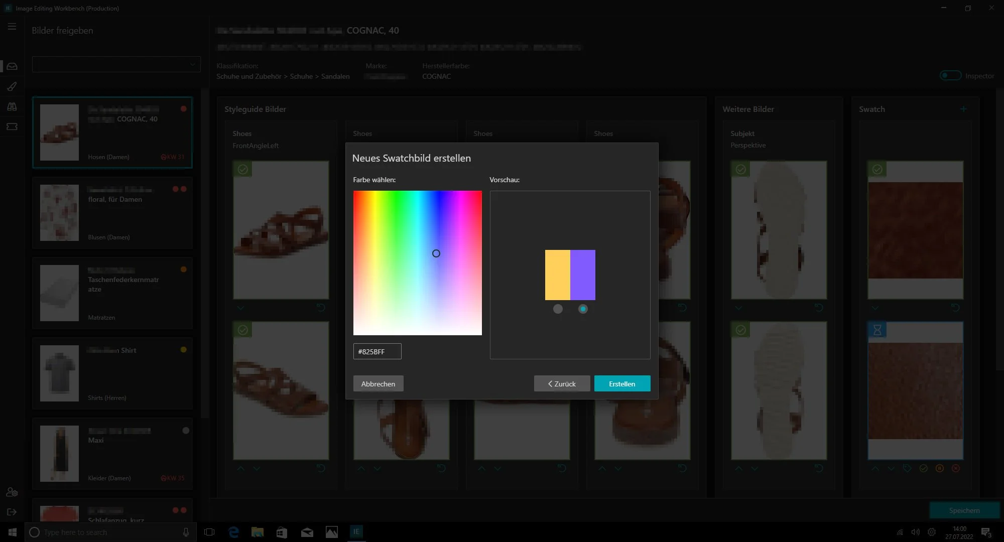 Selection of article photos for the swatch image to be generated (detail section of an article as sample image) (screenshot Axure™ prototype).